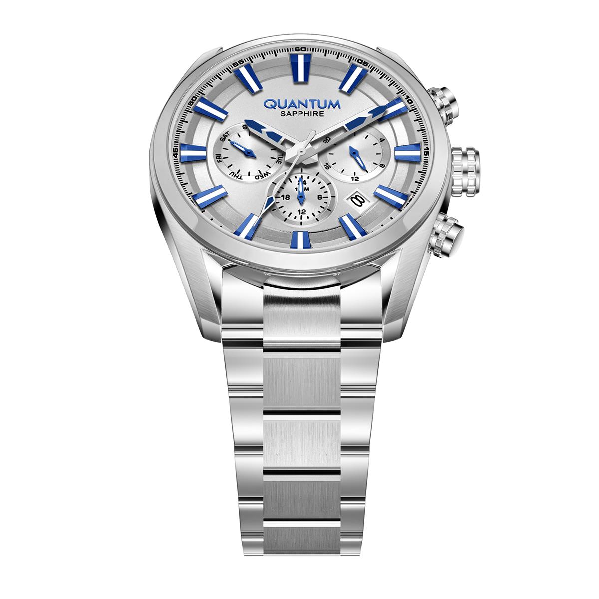 Quantum Adrenaline Αναλογικό Ρολόι, Χρονογράφος Με Ένδειξη Ημερομηνίας σε Ανοξείδωτο Ατσάλι Με Μεταλλικό Μπρασελέ 42 mm