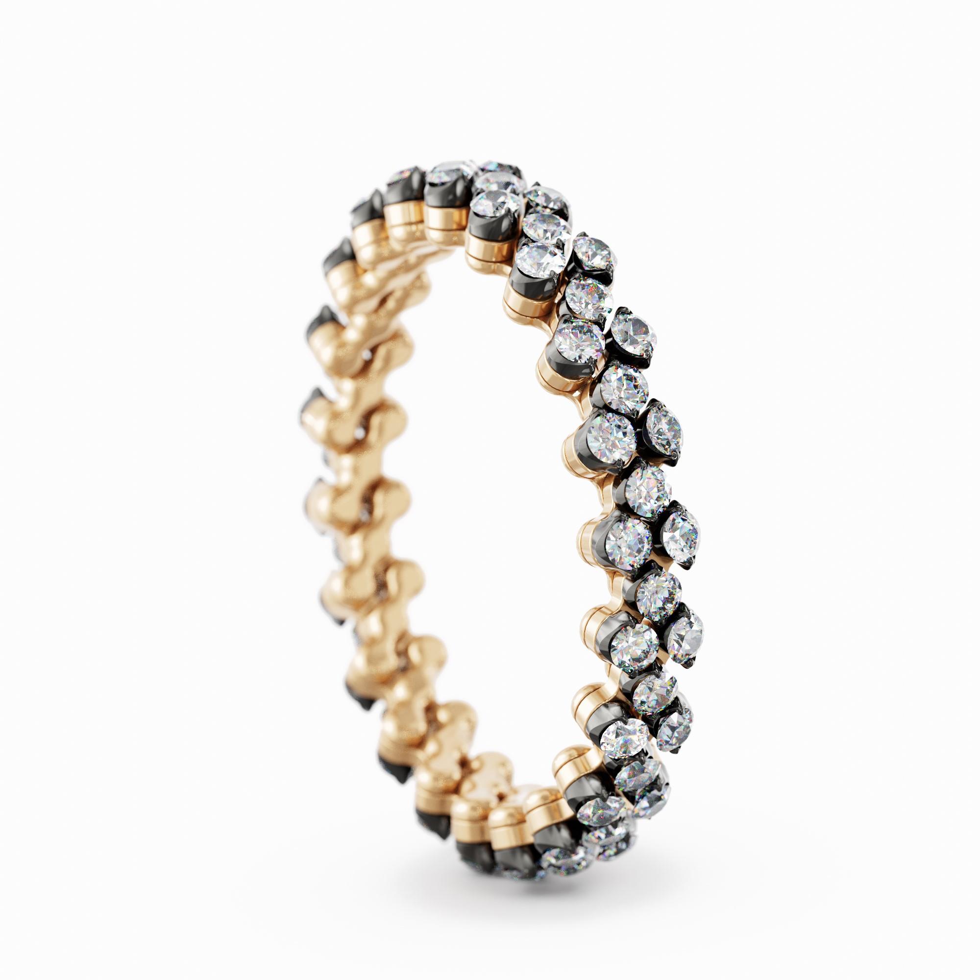 Ring Multi Size 3 Rows Full 2 Points in 18K Rose Gold with Diamonds