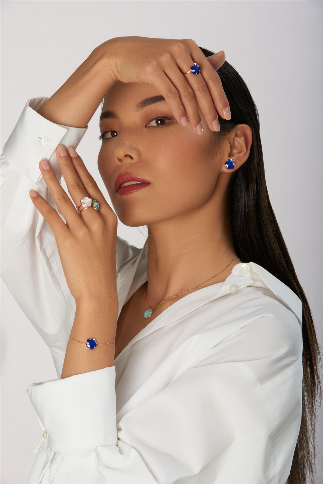 Серьги Petit Joli из розового золота 18 карат с горным хрусталем, лазуритом и бриллиантами.