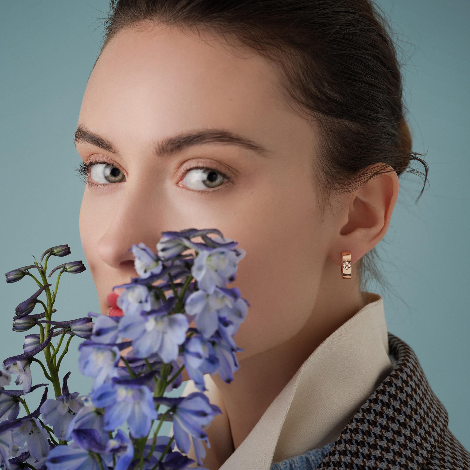 Серьги Love in Verona из розового золота 18 карат с бриллиантами и рубинами.